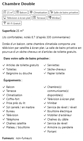 Équipements de la chambre et terrasse privée pour un séjour relaxant